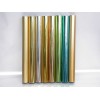 產品特點:電化鋁也稱燙印箔、燙金紙,它是采用真空鍍膜的方法在滌綸薄膜上形成各種顏色。電化鋁轉移印刷最初主要用于包裝裝潢印刷和一些書刊封面、掛歷、賀卡等印后裝飾,能起到畫龍點睛的效果,如今也在紡織品印花中得到廣泛的應用。電化鋁燙印箔是在紙張、印刷油墨、塑料、木材、皮革、板卡紙、布料等表面燙印各種顏色及文字的首選材料。圖案清晰、美觀、色彩鮮艷、光彩奪目、耐磨、耐候。