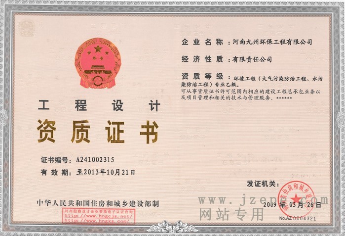 發(fā)證機(jī)構(gòu): | 河南省住房和城鄉(xiāng)建設(shè)局 | 發(fā)證時(shí)間 : | 2009-03-26 |