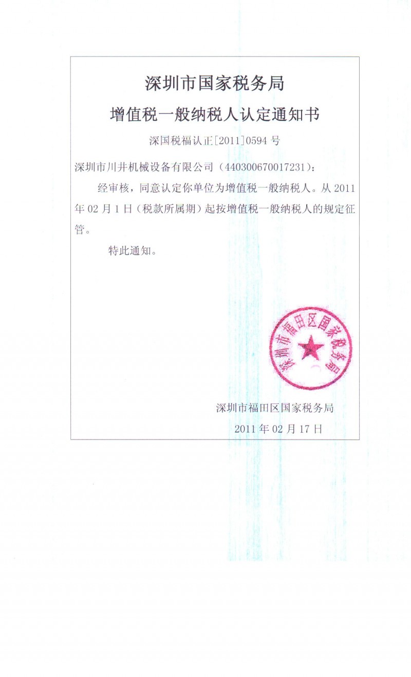 發(fā)證機(jī)構(gòu): | 深圳國(guó)家稅務(wù)局 | 發(fā)證時(shí)間 : | 2010-12-02 |