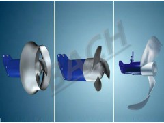 進口潛水?dāng)嚢铏C,在水處理工藝流程中,廣泛應(yīng)用于氧化溝推流,各類生化池的攪拌,同時也可用于河流防凍,景觀水循環(huán)等。低速推流器由潛水電機、減速裝置、葉輪和安裝系統(tǒng)等組成。其特點是配套功率小(1.5~7.5Kw),轉(zhuǎn)速低(36~135r/min),葉槳直徑大(1000~2500mm),低速旋轉(zhuǎn),產(chǎn)生大體積流場,服務(wù)范圍廣。后掠式香蕉型葉槳設(shè)計,具有自潔功能,采用聚氨酯或鋁合金材質(zhì)精鑄成型,具有重量輕,強度高,耐腐蝕等優(yōu)點,其優(yōu)異的摩擦性能,可保證在低轉(zhuǎn)速的運動狀態(tài)下于液體產(chǎn)生良好的阻尼效果,從而創(chuàng)建出柔和的水流。該系列產(chǎn)品除了具有推流和創(chuàng)建水流的作用外還具攪拌功能。